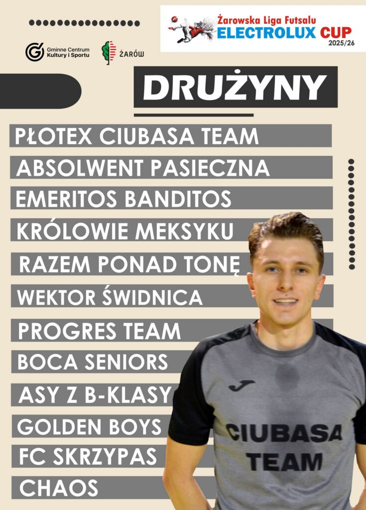 To będzie gorący sezon Żarowskiej Ligi Futsalu Electrolux Cup! O tytuł mistrzowski 18. edycji powalczy 12. drużyn. Pierwsza kolejka odbędzie się 29. listopada. Oprócz nagrody pieniężnej wynoszącej 1000 zł, zwycięzca zagra w finale wojewódzkim, organizowanym przez Dolnośląski Związek Piłki Nożnej. Wstęp na wszystkie mecze jest bezpłatny. Widzimy się w hali sportowej GCKiS na Osiedlu Piastów w Żarowie